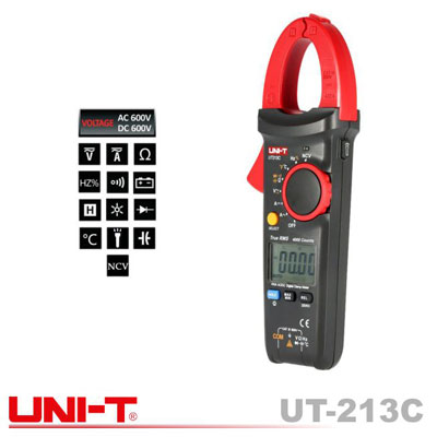 آمپرمتر کلمپی یونیتی مدل UT213C یکی از بهترین و کاملترین محصولات UNIT می باشد که قابلیت های اندازه گیری خازن، دما، ولت AC و DC، آمپر AC و DC، فرکانس و مقاومت را دارا می باشد از ویژگیهای دیگر این محصول قابلیت  True RMS، ردیابی کابل ، اندازه گیری دما بر حسب دو پارامتر سانتیگراد و فارانهایت ، اتورنج بودن ، چراغ قوه از ویژگی های منحصر به فرد این محصول می باشد